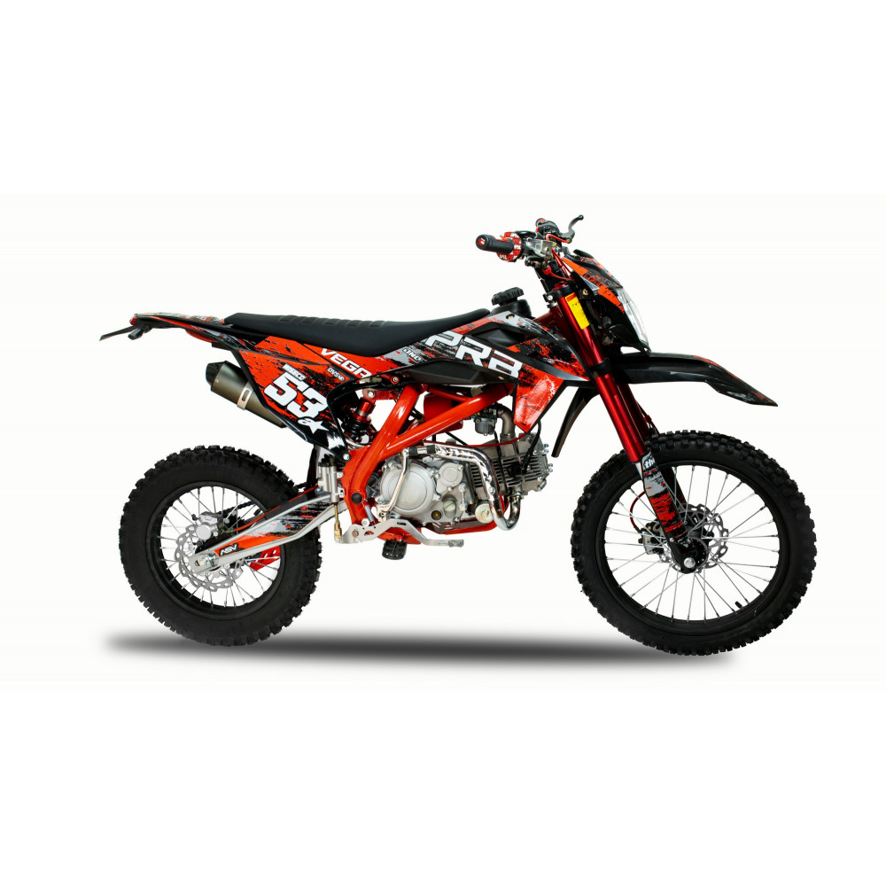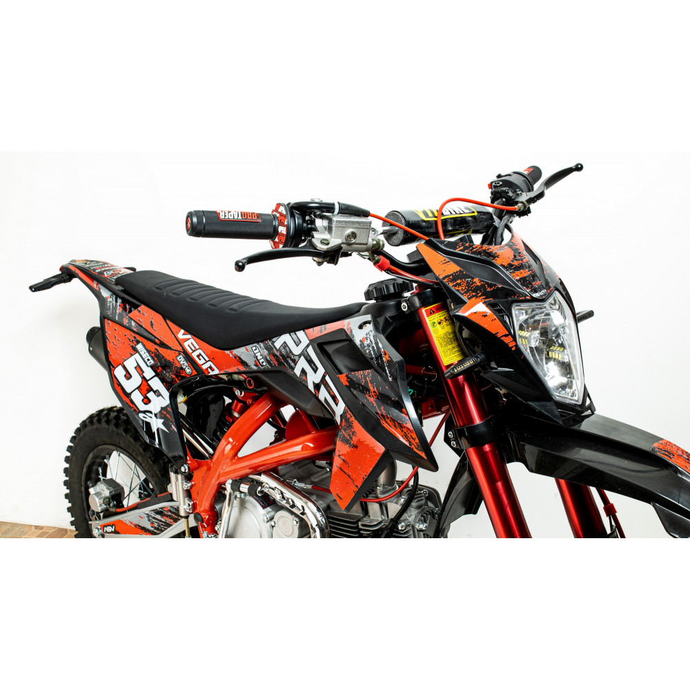 PRB VEGA 150 — це не просто мотоцикл, а справжній виклик бездоріжжю. Під його компактними формами приховується потужний 150-кубовий чотиритактний двигун, готовий підкорювати найскладніші траси. Міцна, але легка рама забезпечує чудову маневреність і стійкість, дозволяючи вам впевнено проходити повороти та реагувати на будь-які зміни маршруту.